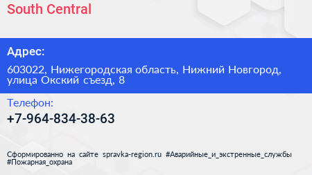 South Central по адресу 603022, Нижегородская область, Нижний Новгород, улица Окский съезд, 8 в дальнейшем Организация, размещена в следующих категориях: