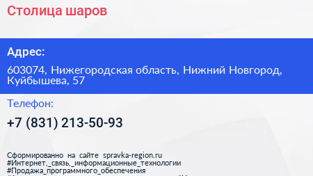 Столица шаров по адресу 603074, Нижегородская область, Нижний Новгород, Куйбышева, 57 в дальнейшем Организация, размещена в следующих категориях: