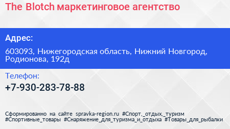 The Blotch, маркетинговое агентство по адресу 603093, Нижегородская область, Нижний Новгород, Родионова, 192д в дальнейшем Организация, размещена в следующих категориях: