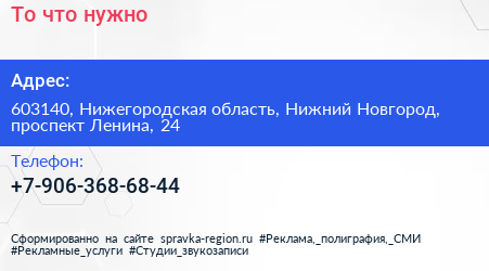 То что нужно по адресу 603140, Нижегородская область, Нижний Новгород, проспект Ленина, 24 в дальнейшем Организация, размещена в следующих категориях: