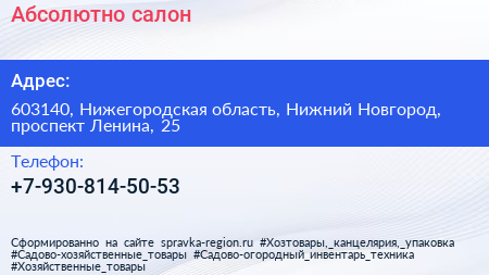 Абсолютно, салон по адресу 603140, Нижегородская область, Нижний Новгород, проспект Ленина, 25 в дальнейшем Организация, размещена в следующих категориях: