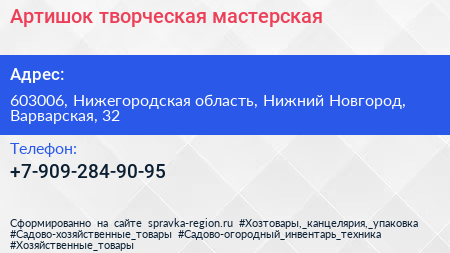 Артишок, творческая мастерская по адресу 603006, Нижегородская область, Нижний Новгород, Варварская, 32 в дальнейшем Организация, размещена в следующих категориях:
