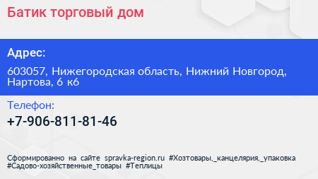 Батик, торговый дом по адресу 603057, Нижегородская область, Нижний Новгород, Нартова, 6 к6 в дальнейшем Организация, размещена в следующих категориях: