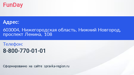 FunDay по адресу 603004, Нижегородская область, Нижний Новгород, проспект Ленина, 108 в дальнейшем Организация, размещена в следующих категориях: