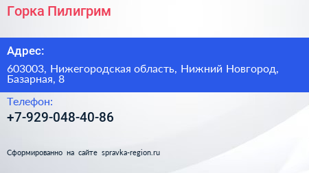 Горка-Пилигрим по адресу 603003, Нижегородская область, Нижний Новгород, Базарная, 8 в дальнейшем Организация, размещена в следующих категориях: