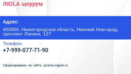 INOLA, шоурум по адресу 603004, Нижегородская область, Нижний Новгород, проспект Ленина, 127 в дальнейшем Организация, размещена в следующих категориях:
