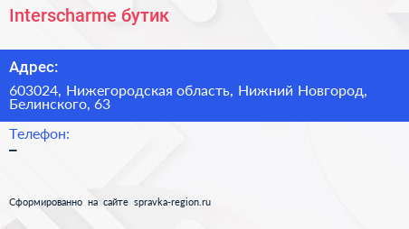 Interscharme, бутик по адресу 603024, Нижегородская область, Нижний Новгород, Белинского, 63 в дальнейшем Организация, размещена в следующих категориях: