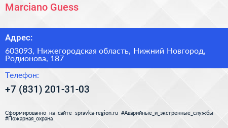 Marciano Guess по адресу 603093, Нижегородская область, Нижний Новгород, Родионова, 187 в дальнейшем Организация, размещена в следующих категориях: