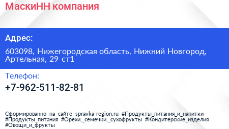 МаскиНН, компания по адресу 603098, Нижегородская область, Нижний Новгород, Артельная, 29 ст1 в дальнейшем Организация, размещена в следующих категориях:
