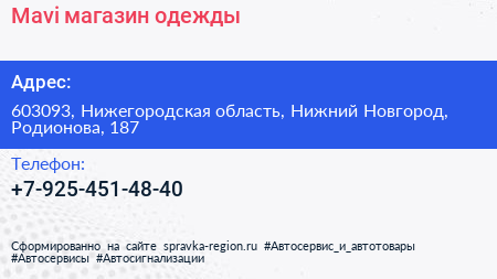Mavi, магазин одежды по адресу 603093, Нижегородская область, Нижний Новгород, Родионова, 187 в дальнейшем Организация, размещена в следующих категориях: