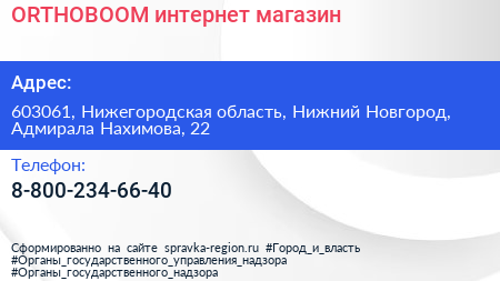 ORTHOBOOM, интернет-магазин по адресу 603061, Нижегородская область, Нижний Новгород, Адмирала Нахимова, 22 в дальнейшем Организация, размещена в следующих категориях: