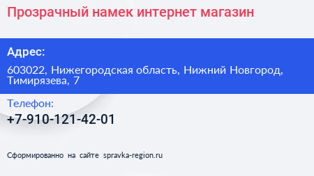 Прозрачный намек, интернет-магазин по адресу 603022, Нижегородская область, Нижний Новгород, Тимирязева, 7 в дальнейшем Организация, размещена в следующих категориях:
