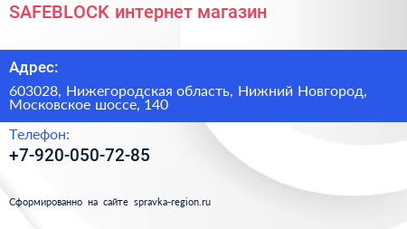 SAFEBLOCK, интернет-магазин по адресу 603028, Нижегородская область, Нижний Новгород, Московское шоссе, 140 в дальнейшем Организация, размещена в следующих категориях:
