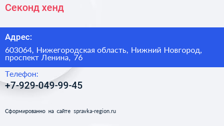 Секонд-хенд по адресу 603064, Нижегородская область, Нижний Новгород, проспект Ленина, 76 в дальнейшем Организация, размещена в следующих категориях: