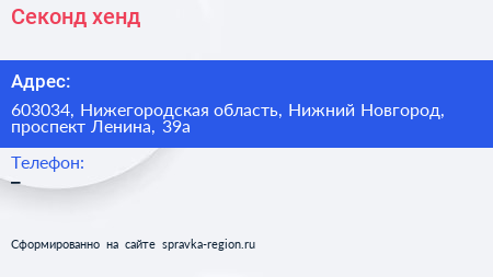 Секонд-хенд по адресу 603034, Нижегородская область, Нижний Новгород, проспект Ленина, 39а в дальнейшем Организация, размещена в следующих категориях: