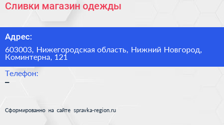 Сливки, магазин одежды по адресу 603003, Нижегородская область, Нижний Новгород, Коминтерна, 121 в дальнейшем Организация, размещена в следующих категориях: