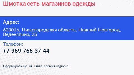 Шмотка, сеть магазинов одежды по адресу 603016, Нижегородская область, Нижний Новгород, Веденяпина, 2Б в дальнейшем Организация, размещена в следующих категориях: