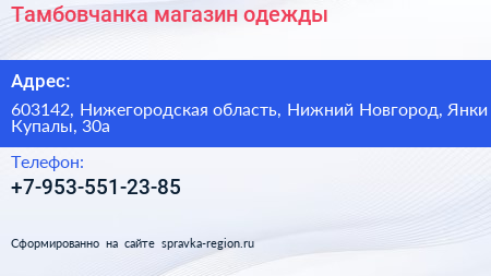 Тамбовчанка, магазин одежды по адресу 603142, Нижегородская область, Нижний Новгород, Янки Купалы, 30а в дальнейшем Организация, размещена в следующих категориях: