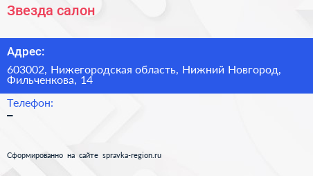 Звезда, салон по адресу 603002, Нижегородская область, Нижний Новгород, Фильченкова, 14 в дальнейшем Организация, размещена в следующих категориях: