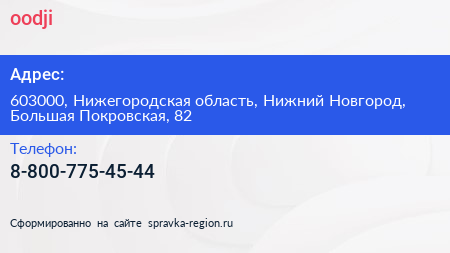 oodji по адресу 603000, Нижегородская область, Нижний Новгород, Большая Покровская, 82 в дальнейшем Организация, размещена в следующих категориях: