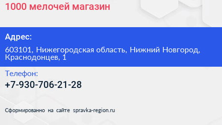 1000 мелочей, магазин по адресу 603101, Нижегородская область, Нижний Новгород, Краснодонцев, 1 в дальнейшем Организация, размещена в следующих категориях: