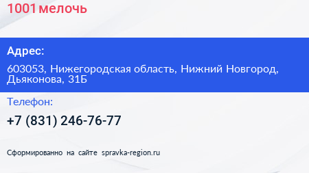 1001 мелочь по адресу 603053, Нижегородская область, Нижний Новгород, Дьяконова, 31Б в дальнейшем Организация, размещена в следующих категориях: