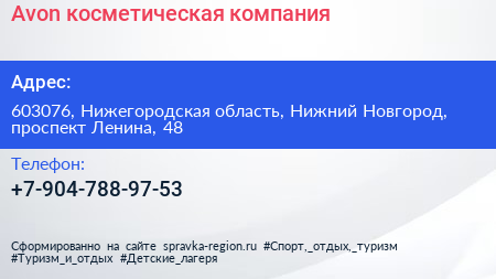 Avon, косметическая компания по адресу 603076, Нижегородская область, Нижний Новгород, проспект Ленина, 48 в дальнейшем Организация, размещена в следующих категориях: