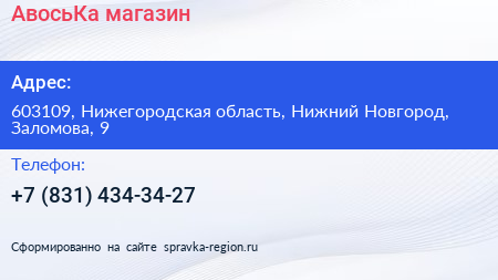 АвосьКа, магазин по адресу 603109, Нижегородская область, Нижний Новгород, Заломова, 9 в дальнейшем Организация, размещена в следующих категориях: