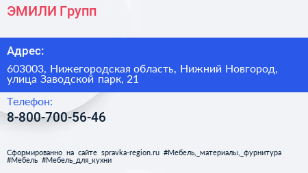 ЭМИЛИ Групп по адресу 603003, Нижегородская область, Нижний Новгород, улица Заводской парк, 21 в дальнейшем Организация, размещена в следующих категориях: