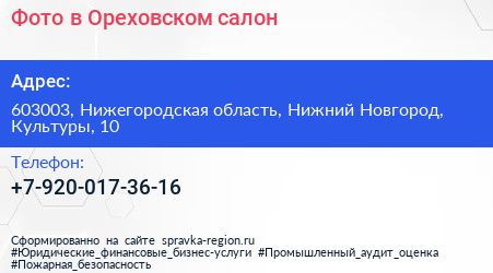 Фото в Ореховском, салон по адресу 603003, Нижегородская область, Нижний Новгород, Культуры, 10 в дальнейшем Организация, размещена в следующих категориях: