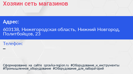 Хозяин, сеть магазинов по адресу 603138, Нижегородская область, Нижний Новгород, Политбойцов, 23 в дальнейшем Организация, размещена в следующих категориях: