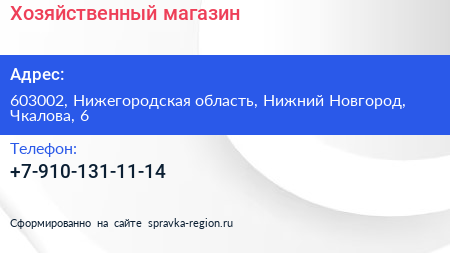 Хозяйственный магазин по адресу 603002, Нижегородская область, Нижний Новгород, Чкалова, 6 в дальнейшем Организация, размещена в следующих категориях: