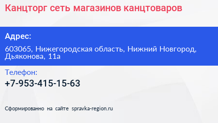 Канцторг, сеть магазинов канцтоваров по адресу 603065, Нижегородская область, Нижний Новгород, Дьяконова, 11а в дальнейшем Организация, размещена в следующих категориях: