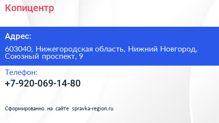 Копицентр по адресу 603040, Нижегородская область, Нижний Новгород, Союзный проспект, 9 в дальнейшем Организация, размещена в следующих категориях: