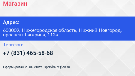 Магазин по адресу 603009, Нижегородская область, Нижний Новгород, проспект Гагарина, 112а в дальнейшем Организация, размещена в следующих категориях: