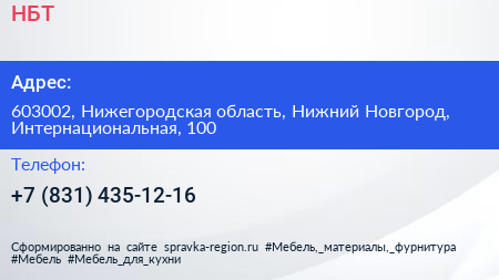 НБТ по адресу 603002, Нижегородская область, Нижний Новгород, Интернациональная, 100 в дальнейшем Организация, размещена в следующих категориях: