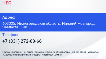 НЕС по адресу 603035, Нижегородская область, Нижний Новгород, Чаадаева, 10и в дальнейшем Организация, размещена в следующих категориях: