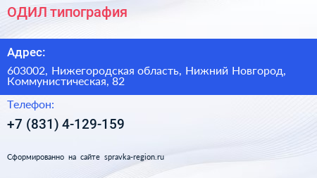 ОДИЛ, типография по адресу 603002, Нижегородская область, Нижний Новгород, Коммунистическая, 82 в дальнейшем Организация, размещена в следующих категориях: