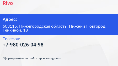 RIvo по адресу 603115, Нижегородская область, Нижний Новгород, Генкиной, 18 в дальнейшем Организация, размещена в следующих категориях: