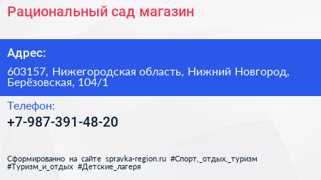 Рациональный сад, магазин по адресу 603157, Нижегородская область, Нижний Новгород, Берёзовская, 104/1 в дальнейшем Организация, размещена в следующих категориях: