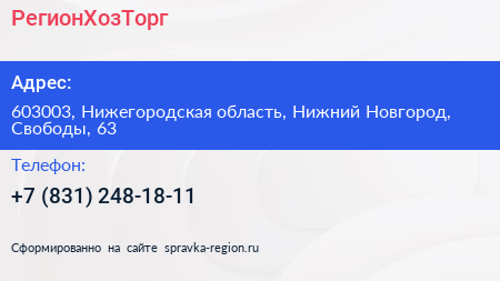 РегионХозТорг по адресу 603003, Нижегородская область, Нижний Новгород, Свободы, 63 в дальнейшем Организация, размещена в следующих категориях:
