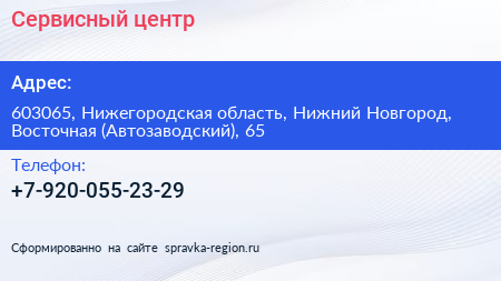Сервисный центр по адресу 603065, Нижегородская область, Нижний Новгород, Восточная (Автозаводский), 65 в дальнейшем Организация, размещена в следующих категориях: