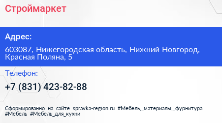 Строймаркет по адресу 603087, Нижегородская область, Нижний Новгород, Красная Поляна, 5 в дальнейшем Организация, размещена в следующих категориях: