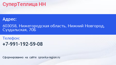СуперТеплица-НН по адресу 603058, Нижегородская область, Нижний Новгород, Суздальская, 70Б в дальнейшем Организация, размещена в следующих категориях:
