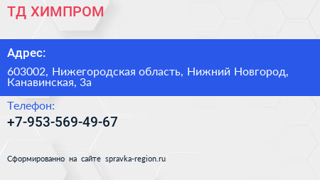 ТД ХИМПРОМ по адресу 603002, Нижегородская область, Нижний Новгород, Канавинская, 3а в дальнейшем Организация, размещена в следующих категориях: