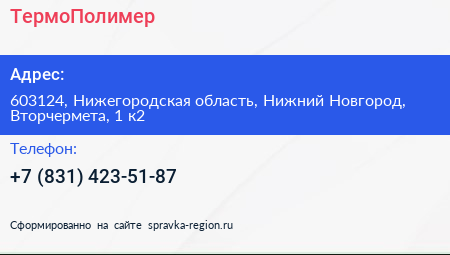 ТермоПолимер по адресу 603124, Нижегородская область, Нижний Новгород, Вторчермета, 1 к2 в дальнейшем Организация, размещена в следующих категориях: