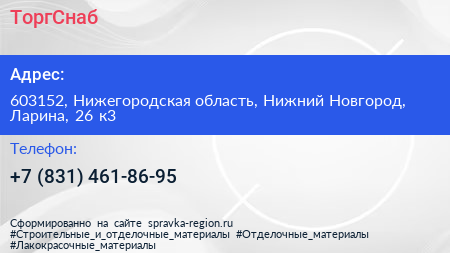 ТоргСнаб по адресу 603152, Нижегородская область, Нижний Новгород, Ларина, 26 к3 в дальнейшем Организация, размещена в следующих категориях: