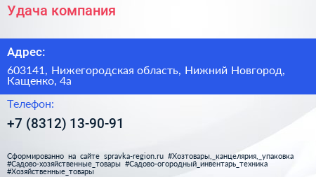 Удача!, компания по адресу 603141, Нижегородская область, Нижний Новгород, Кащенко, 4а в дальнейшем Организация, размещена в следующих категориях: