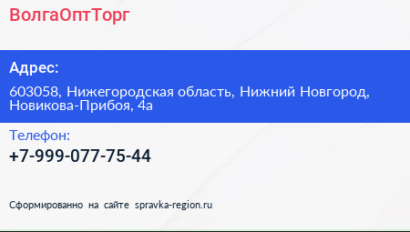 ВолгаОптТорг по адресу 603058, Нижегородская область, Нижний Новгород, Новикова-Прибоя, 4а в дальнейшем Организация, размещена в следующих категориях: