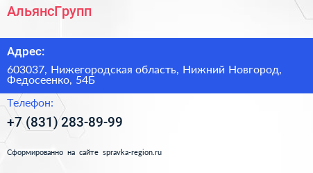 АльянсГрупп по адресу 603037, Нижегородская область, Нижний Новгород, Федосеенко, 54Б в дальнейшем Организация, размещена в следующих категориях: